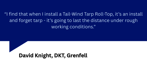 Our Roll-Top Tail-Wind Tarps have been a game changer for David Knight Transport - allowing them to transport grains, fertilisers and feed without the worry of it getting wet or falling out.